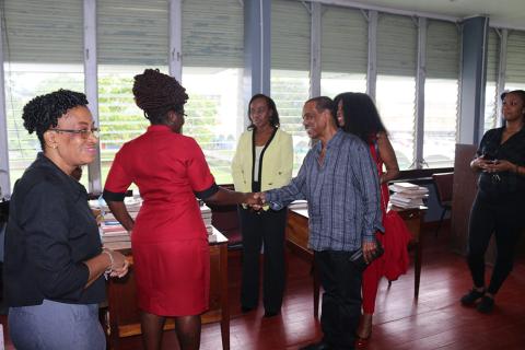 Chancellor of the University of Guyana (UG), Professor Edward Greene, visit the Library on November 21, 2019